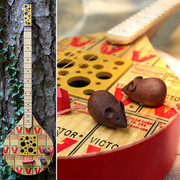 Kirk Fry – wonderful, sometimes whimsical, wood and metal sculptures in the form of playable three-string acoustic/electric guitars;
